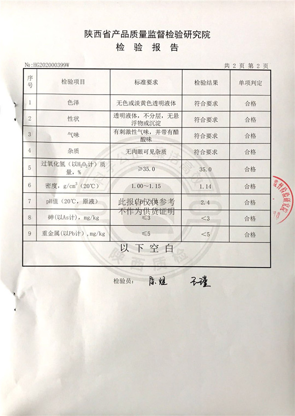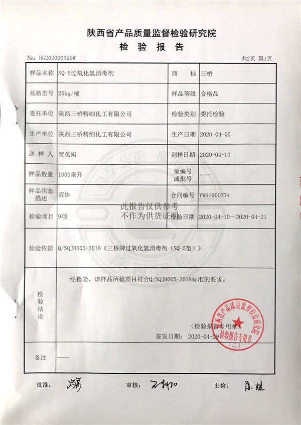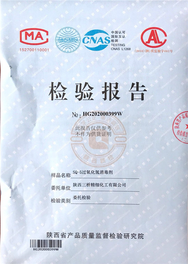 三橋牌過氧化氫消毒劑消毒液檢測報告(2020年度)