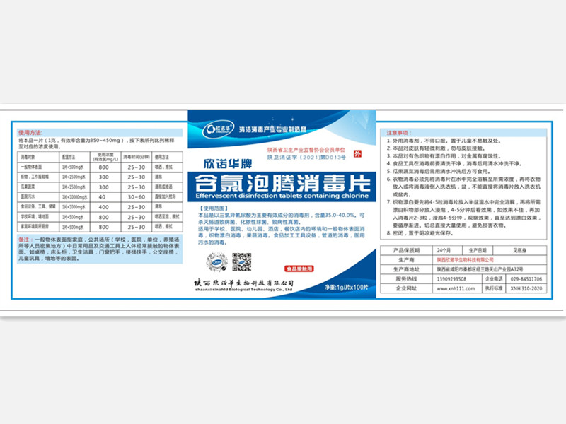 產(chǎn)品名稱: 欣諾華牌含氯泡騰消毒片 商標: