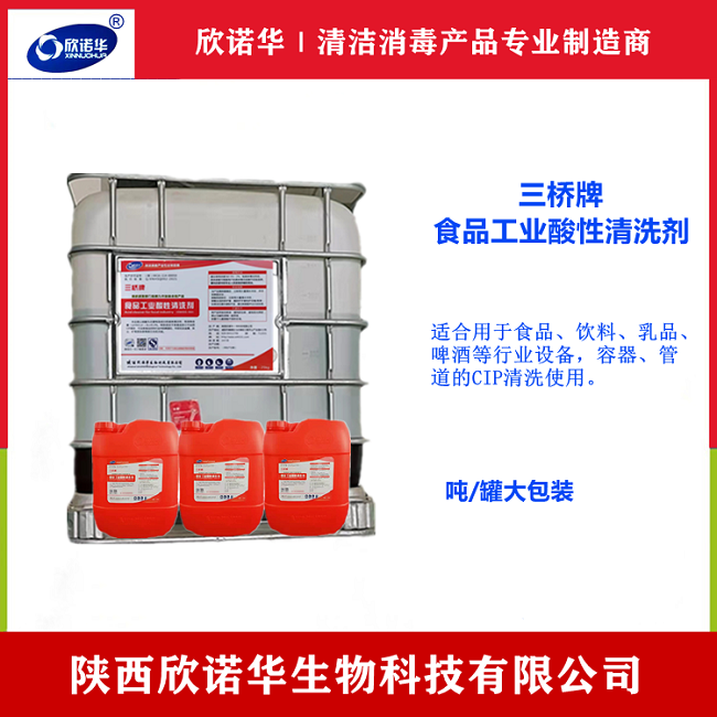 陜西欣諾華生物科技有限公司生產(chǎn)《三橋牌》食品清洗劑,食品工業(yè)酸性清洗劑,食品工業(yè)堿性清洗劑,CIP復合酸性清洗劑,CIP復合堿性清洗劑,過氧乙酸消毒液《欣諾華牌》過氧化氫消毒液,食品級次氯酸鈉消毒液,復合季銨鹽消毒液,過氧化氫銀離子消毒液,酒精消毒液。